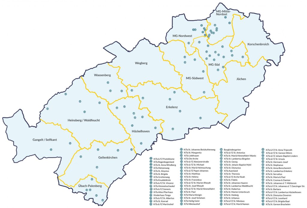 Die pro multis gGmbH ist ein katholischer Trägerverbund mit derzeit 73 KiTas und 19 Familienzentren in den Regionen Mönchengladbach und Heinsberg. Wir beschäftigen mittlerweile knapp 1.200 Mitarbeiter:innen, von der Gebietsleiterin über die pädagogische Fachkraft und den PIA-Auszubildenden bis hin zur Reinigungskraft. Rund 4.400 Kinder werden in unseren Einrichtungen betreut. Und wir wachsen weiter.